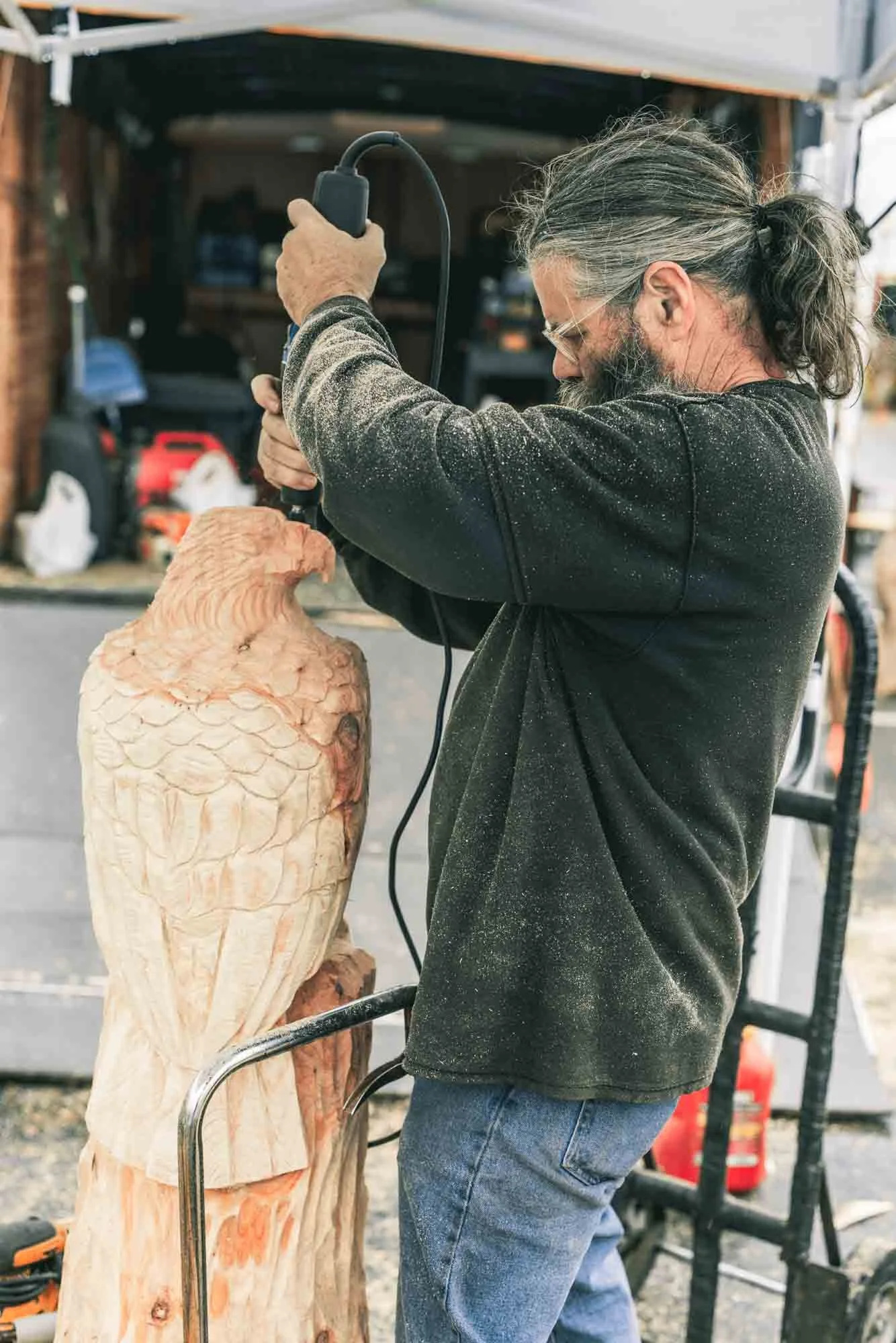 Every year the town of Arlington hosts a gathering of vendors and artists. Many of the artists are chainsaw carvers who make amazing art out of wood. The resulting images are different parts of the event that caught my eye. Lots of colors and textures and shapes to see and experience. Our visit was a cut short because the threatening rain finally came and we moved on.