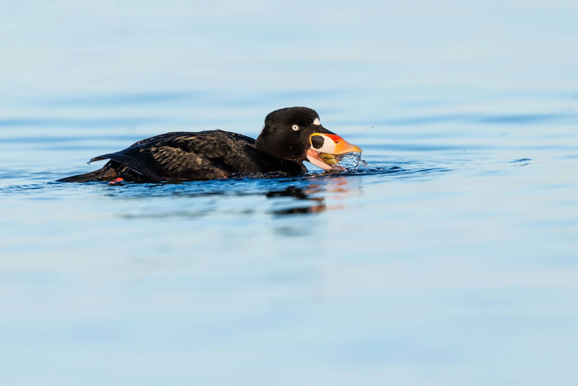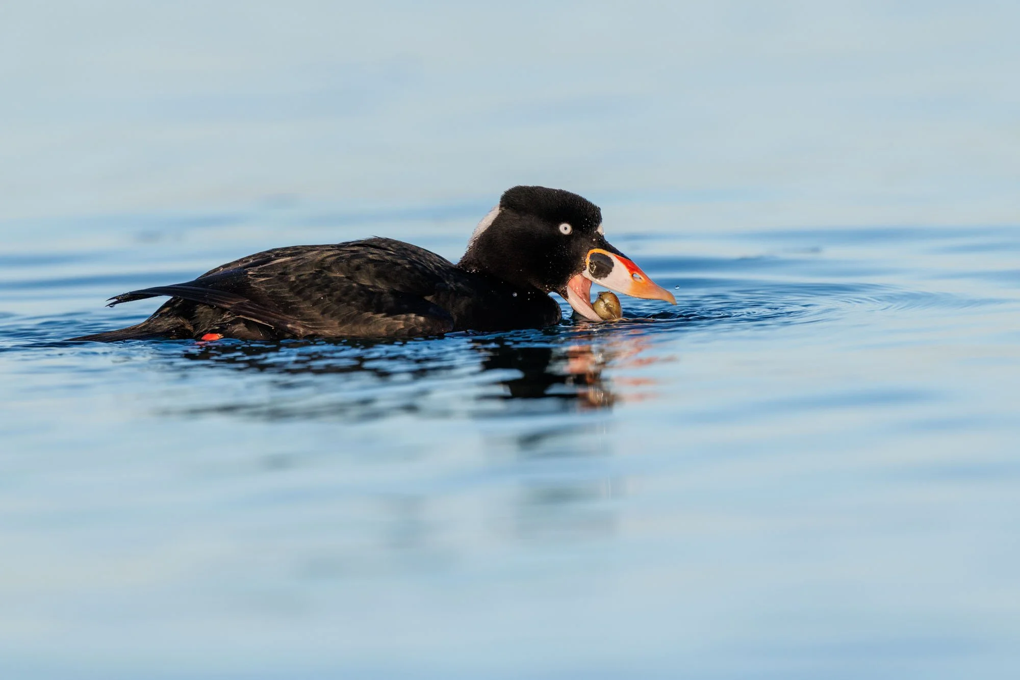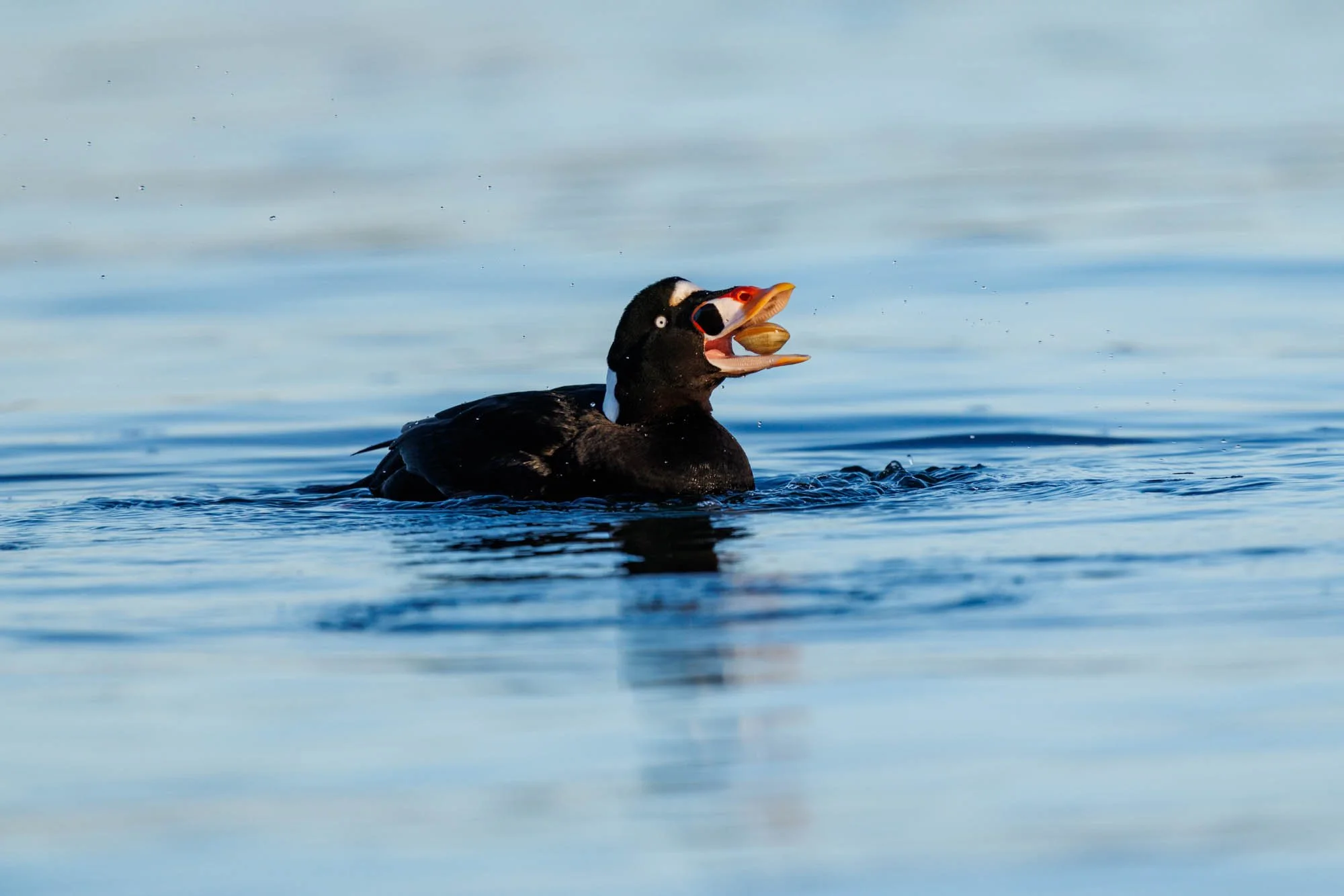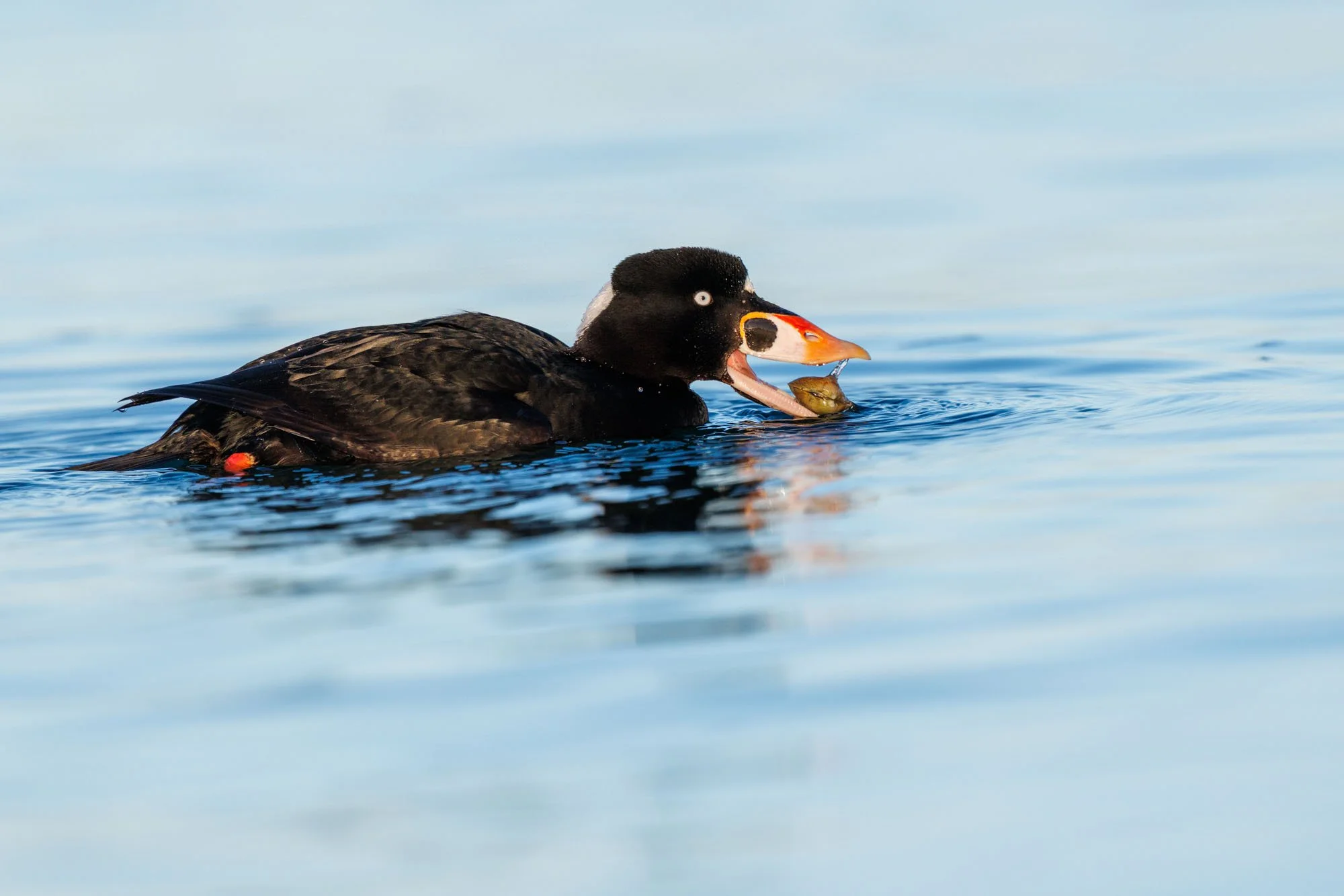 The second sighting were a series of Surf Scoters retrieving shell fish from the bottom and popping up to eat. Wonderful series of images of them eating their reward.